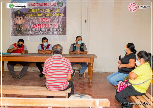Con la presencia del Abog. Víctor Raúl Ramirez Rosales Gerente Municipal, José Poves Quiñones Subprefecto Distrital, representante de la CMAN - Ing. Cristhian Jhon del Aguila Chavez y representantes de la Asociación de Vivienda Los Laureles, se juramentó a la comisión de vigilancia.