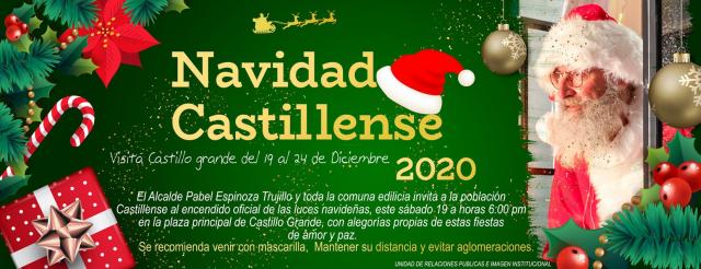 Hoy, hoy sábado 19 a horas 6:00 pm en la plaza principal de Castillo Grande, participa con toda la familia del ENCENDIDO DE LUCES con alegorías propias de estas fiestas de amor y paz